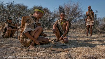 Living in such extreme territory, the bush people have adapted in many interesting ways. While it might look like a forbidding environment, I was quickly shown how they get water in dry times: they dig and find certain bulbs that retain moisture during the dry season. You and I would probably do a lot of digging before we found one of these underground treasures, but the bush people know where to look, and it takes almost no digging in the sand before they'd exposed one.